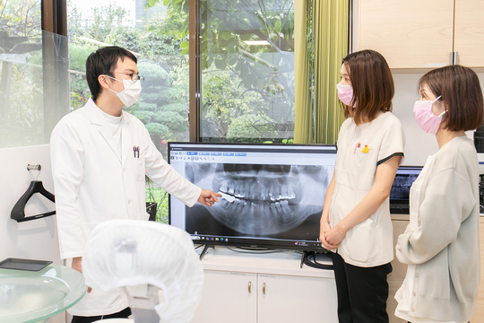 お任せするのは、一人の患者さまに対して予約から受付、そして診療まで一貫して関わっていく業務です。患者さまを最初にお迎えする「医院の顔」として電話対応や予約管理などを行う受付業務を7割、治療の現場で行う診療補助などの歯科助手業務を3割の比率で担当いただきます。
