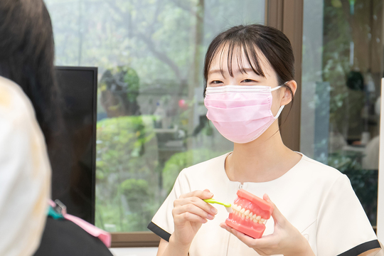 診療終了後、院内や診療台(ユニット)の清掃、器材の片付け・消毒・滅菌、エプロンやタオルの洗濯を行います。クリーンスタッフがいるため、掃除や滅菌消毒の作業負担は軽減されています。